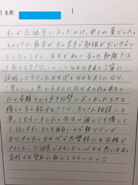 でもこうやって塾の感想書いてくれたり、プレゼントまでしてくれて、つくづくこの仕事をしてきて良かったなと感じます。