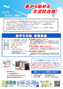 チラシには新中2・新中3生対象と書かれていますが、新中1生や小学生の方でも受講できます。