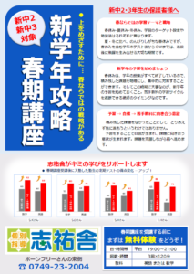 志祐舎では、新学年攻略春期講座を実施し、スムーズに新学年の学習が進めるようにしていきます。