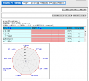 今日は中2のHさんが、中2二学期総復習学力診断テストの再テストを受け、見事100点を取ってくれました。