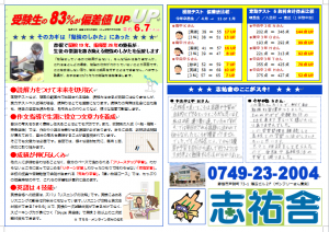 定員制ということもありますので、彦根中央中、彦根南中、彦根東中、彦根西中、彦根中、鳥居本中、多賀中エリアにお住いの小中学生のみなさん及び保護者の方、当塾にご興味ある方は、下記電話番号にお問い合わせください。